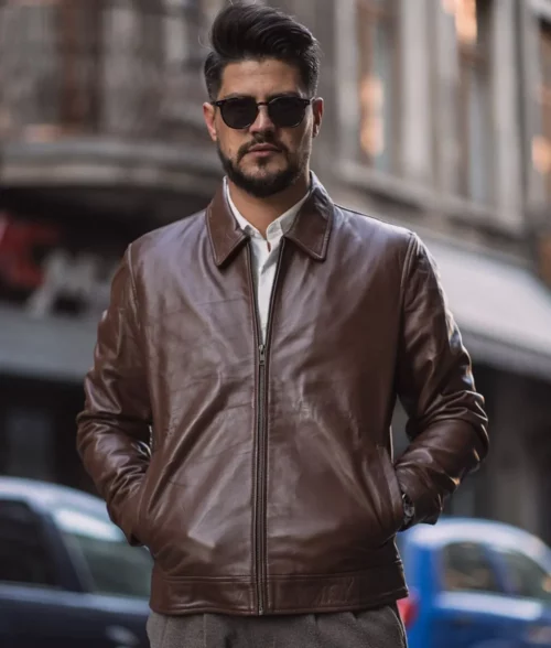 Here’s the deal—you’re not just buying a plain old men’s leather jacket. You’re investing in your confidence arsenal. Remember that time you wanted to make an entrance that people would remember? This leather jacket with collar is your answer. The clean lines of this dark brown leather jacket work like magic, whether you’re crushing it at work or owning the weekend scene.