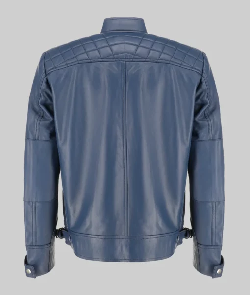 A Fiery Motorcycle Jacket like Sam Men’s Blue Cafe Racer Quilted Biker Leather Jacket