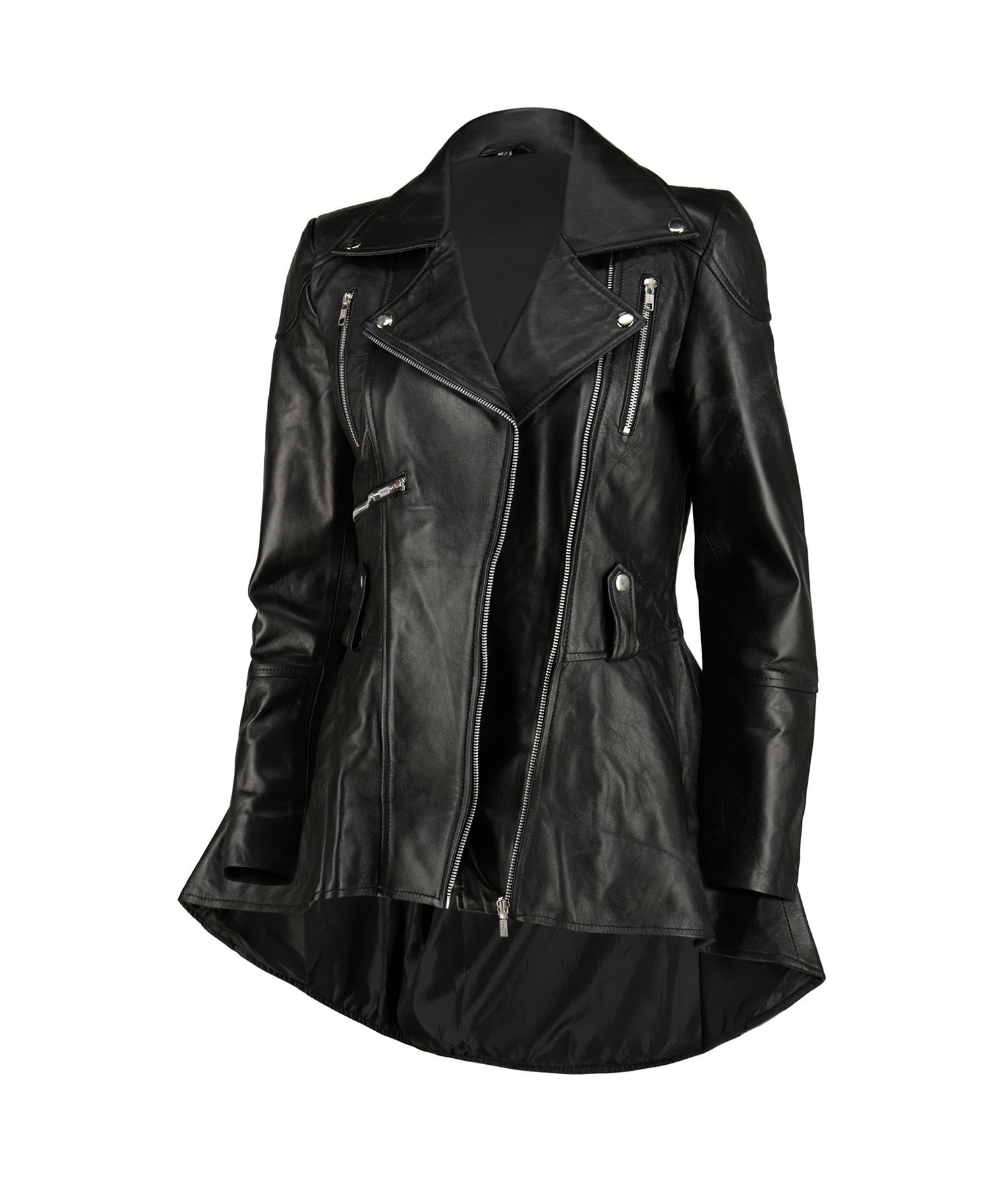 Women’s Peplum Waist Black Biker Jacket